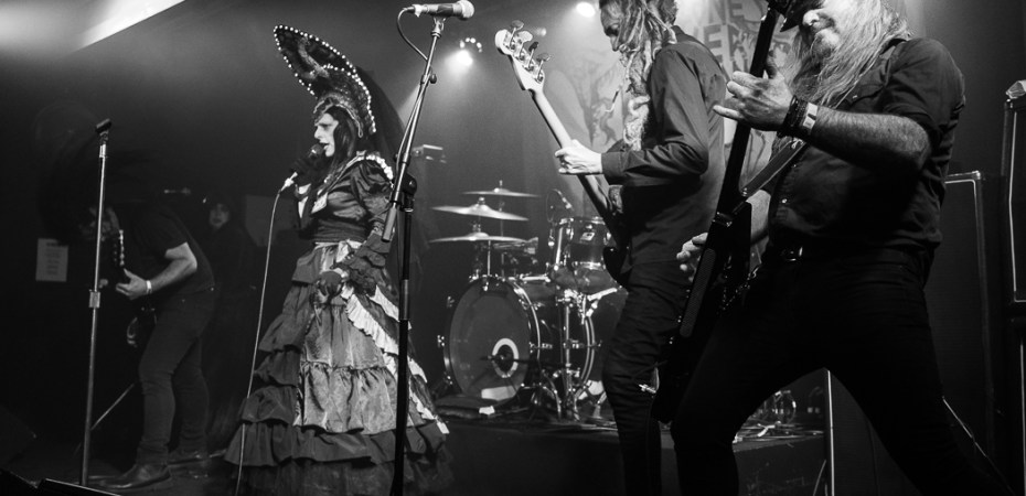 On stage, the band unleash hell; bringing a 70’s metal rock opera to life. The drums, they pounded, the bass, it throbbed; guitars were tortured into screaming flails; and driving it all was that banshee cry of the Rat Queen herself. Tonight, a gaggle of ghoulish hooded spectres joined the on stage mayhem to add their demonic wailing to the proceedings.