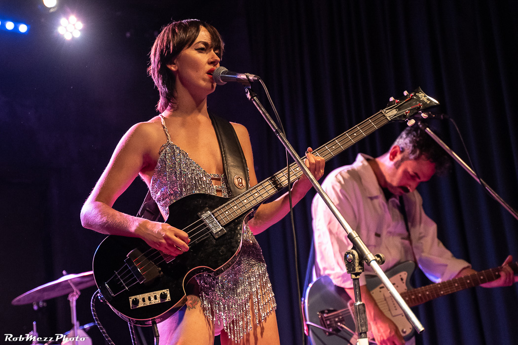 The band is colour coordinated – all in black and leather to start the show with a few familiar tunes that have been drip fed to fans over the last year or so. And all the while, fixing all attention to the centre of the stage, Melissah sways, swings and entices with some dreamy vocals while picking up the bass for the occasional tune. There was even a saucy cover of Blondie’s Hanging on the Telephone.
