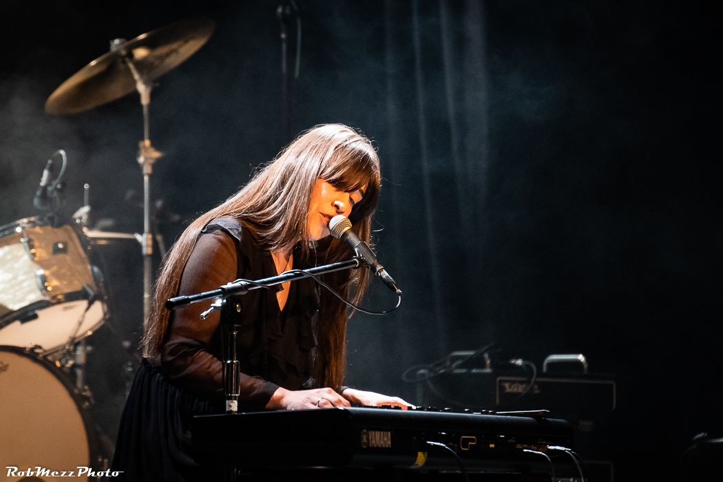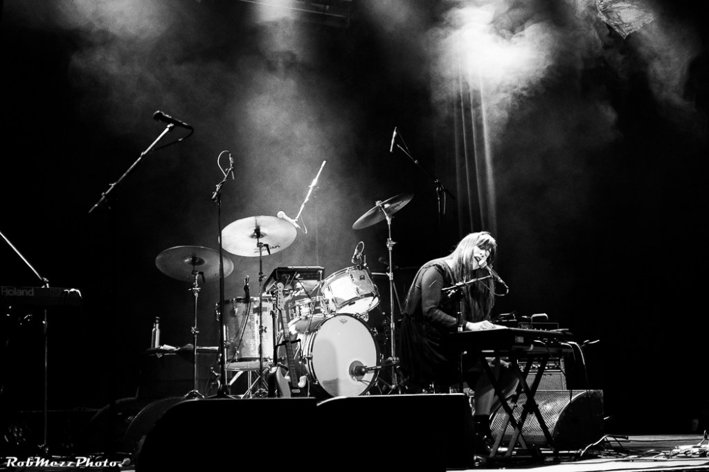 Sarah Mary Chadwick sits alone on the stage behind a keyboard, surrounded by the headline band’s instrumentalia. Shrouded in smoke and with a couple of piercing white lights to illuminate her, the atmosphere is definitely set as mysteriously stark.