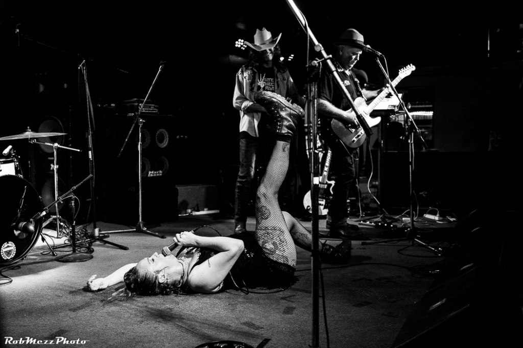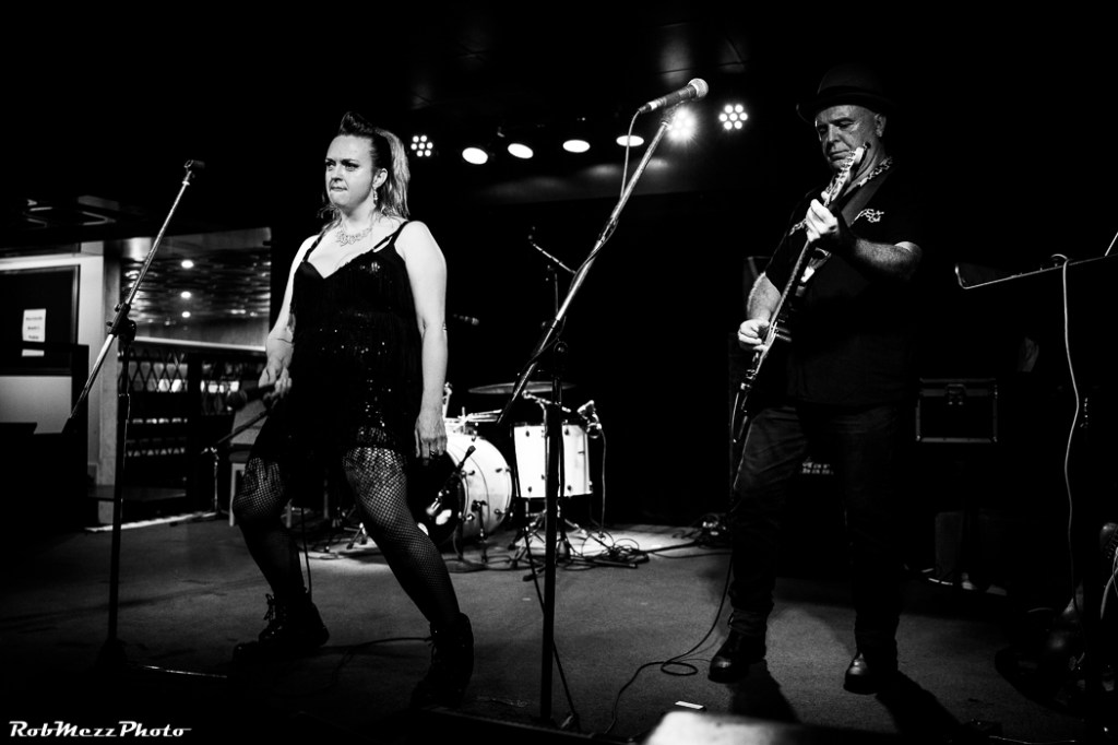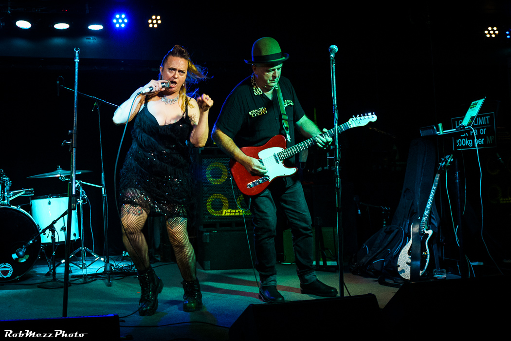 The 2 piece of Ms Celia, doing all the jumpin’ and singin’ and blues harpin’; and Ross Johnston on guitar and electrikky band in a box bits; launch into the set with a raunchy version of Lets Get Fucked Up by the Cramps – definitely a sign of things to come.