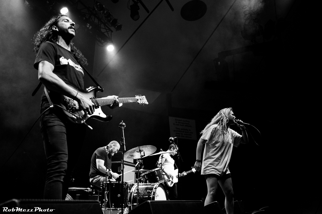 Did I mention the energy?…..lots of energy. A drum and bass engine room of driving sound, guitar that was both thrashy and melodic at the same time, and manic power vocals, running around the stage with plenty of hair whipping going on. There were even a few excursions across the barriers into the crowd to share the love and get up close and personal with the punters.