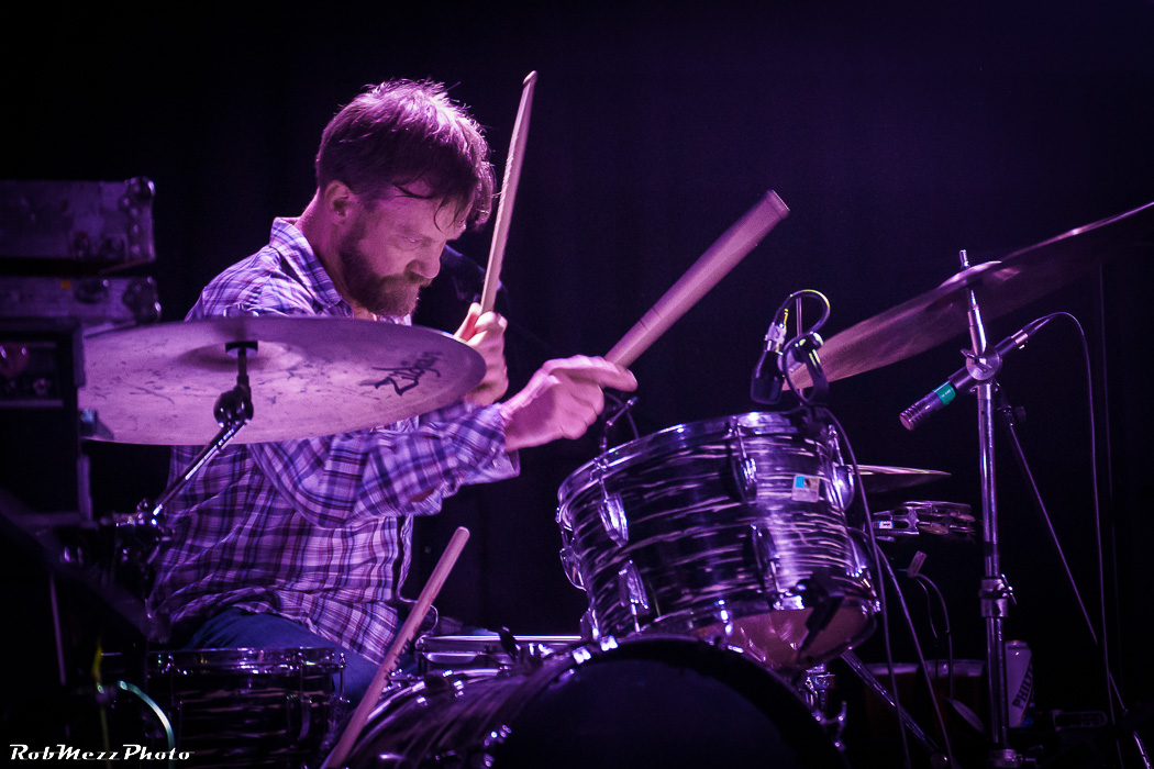 Some gear swapping on stage, unfortunately the gong disappeared, but on came what seemed like a million guitar effects pedals. Kat Harley was doing a double shift tonight, swapping her synth from No Cake to strapping on a bass with The Laurels.