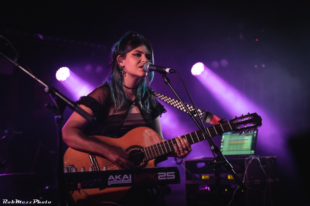 Playing with a real live drummer and more of the band in a box, Lola Scott makes the stage her own. Sporting a classical guitar and the odd bit of synth keys to add a little more live to her set, it’s really her vocals that shine through her indie pop sound.