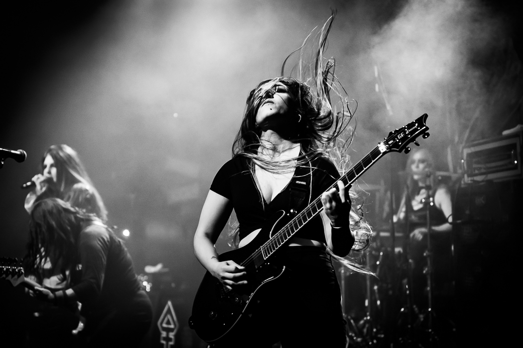 There was lots of heavy metal guitar hero posturing from the twin guitar assault of Nikki Stringfield and Jimena Fosado (joining for this tour); bass player Wanda Ortiz wielded her axe like a weapon, while powerhouse drummer Linda McDonald smashed the beejeezuz out of the skins. Lead vocals Kirsten Rosenberg made it her personal mission to rev up the crowd with soaring vocals and plenty of banter.