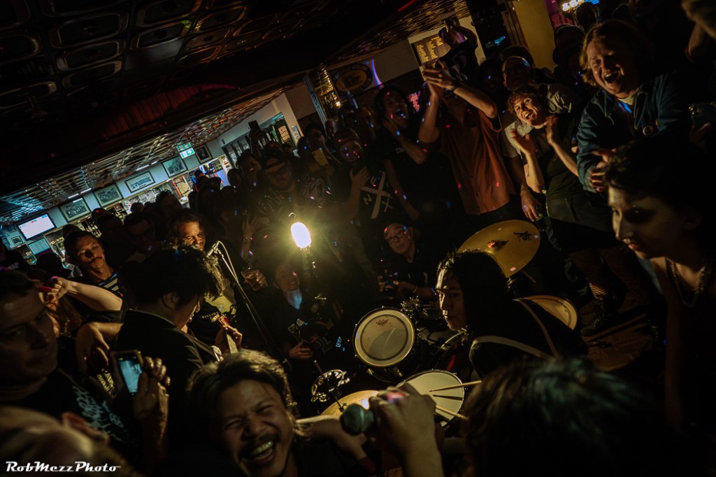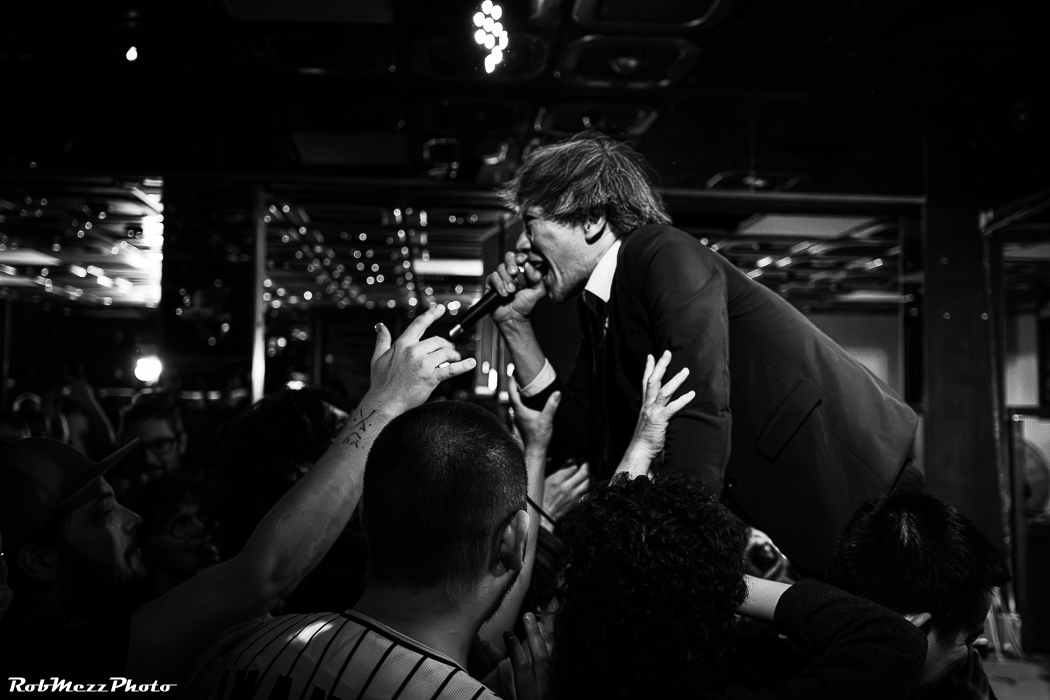 Towards the end of the set the Genki’s drum kit & Keizo’s guitar gets transferred to the middle of the floor to continue the chaos in amongst the punters, all while Marya is carried around them on the shoulders of the crowd like an anti-circle pit.