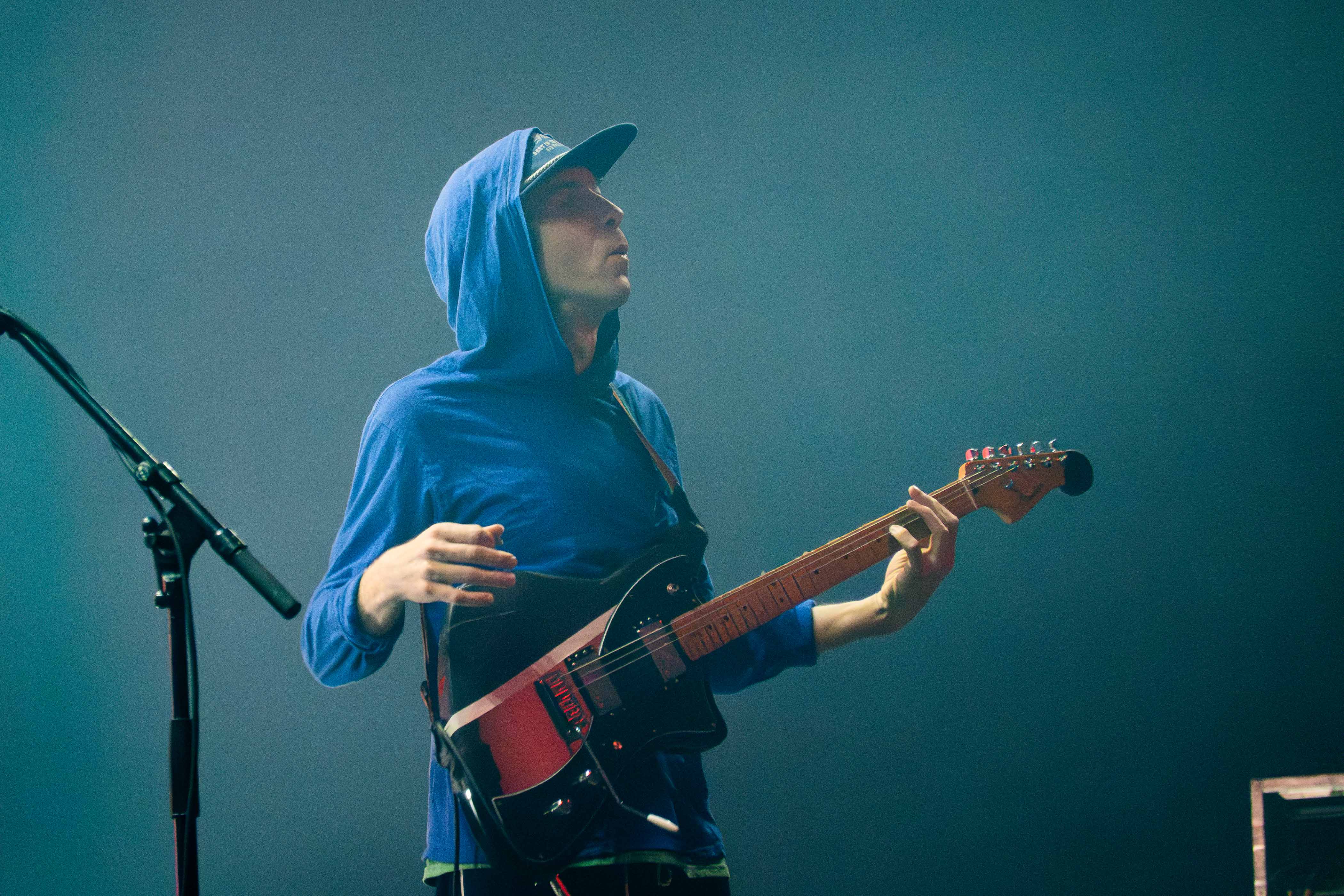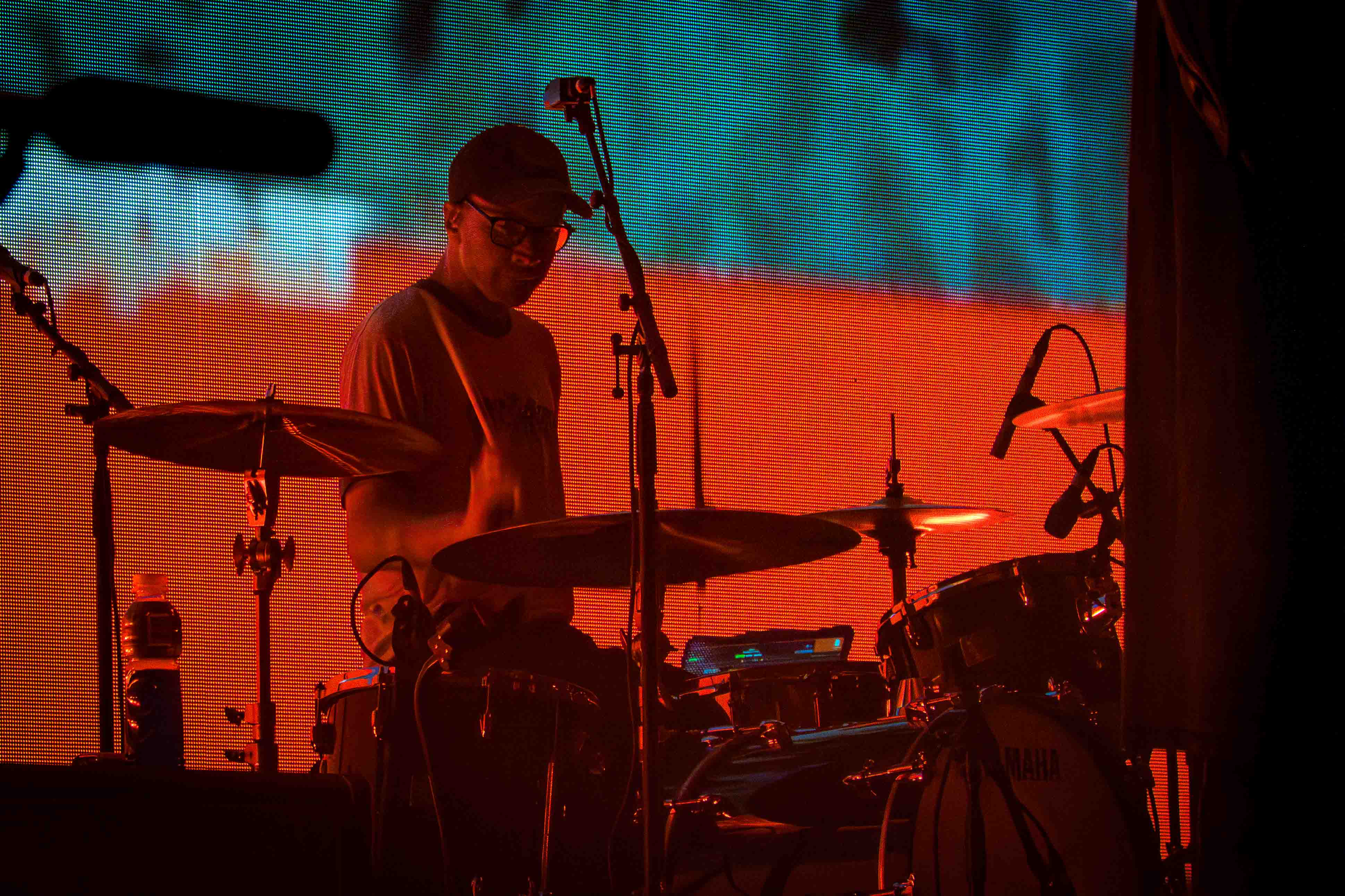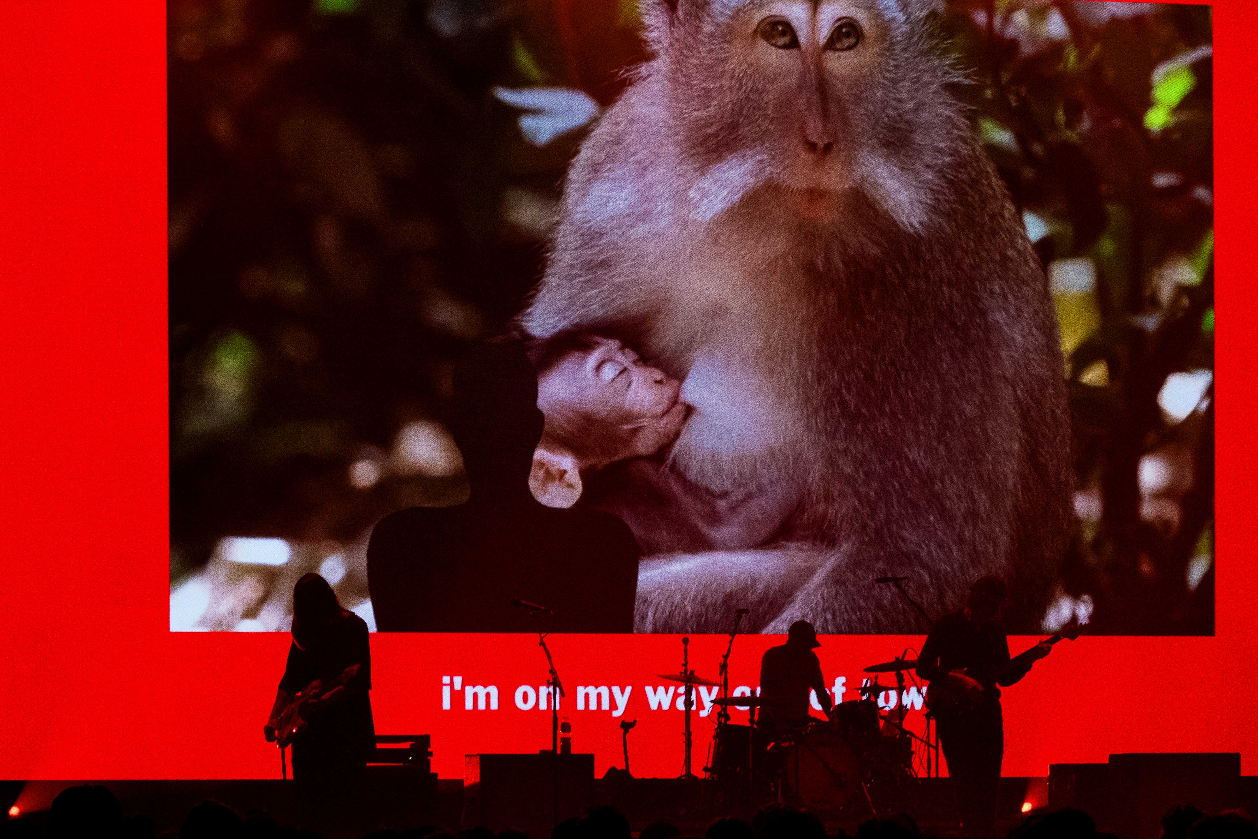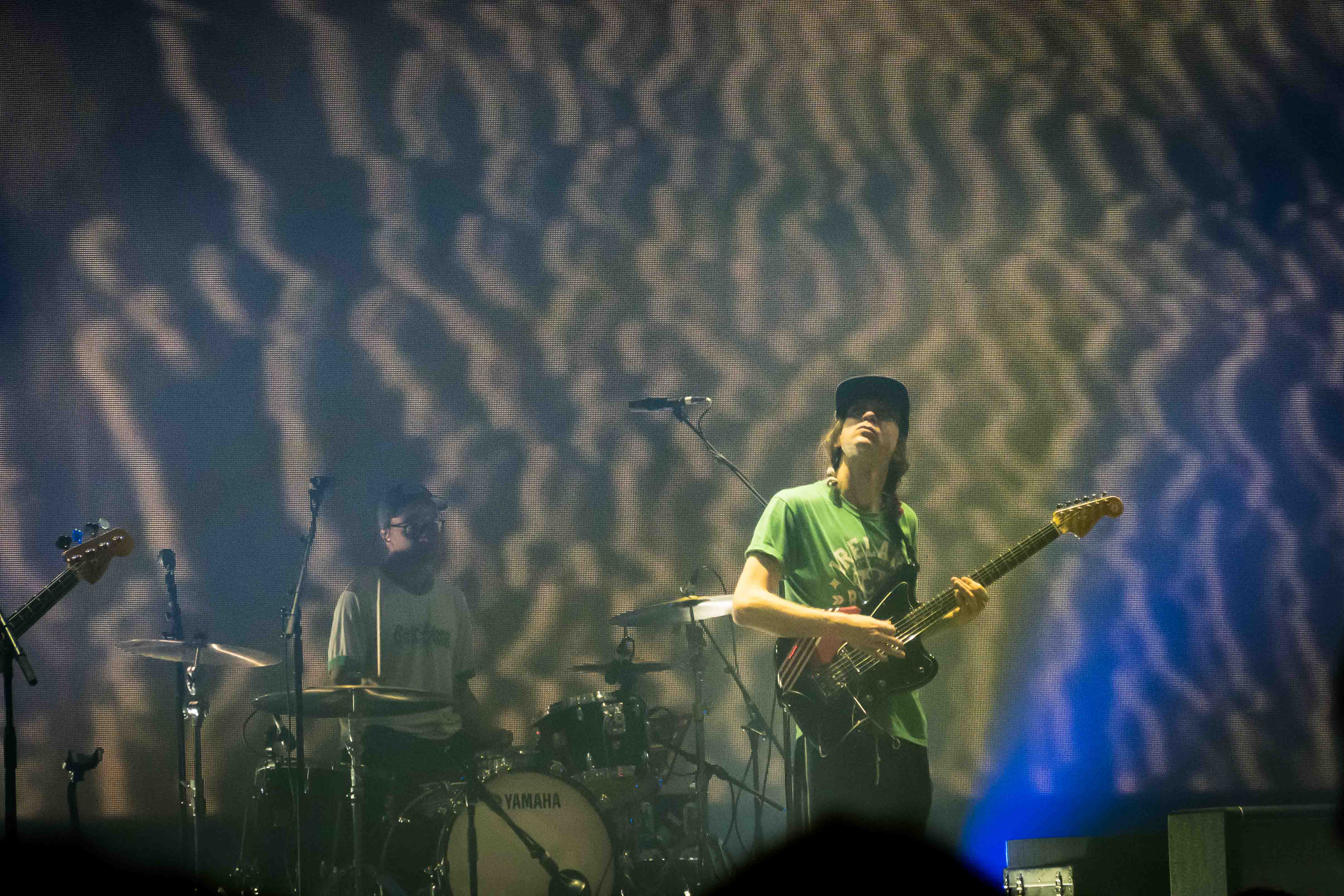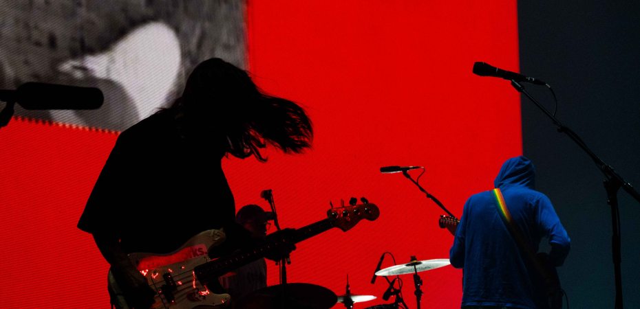 Fresh off their Dark Mofo appearance the night before, DIIV brought their signature blend of shoegaze and shadow to Carriageworks – and it was more than just a set, it was a constructed experience. The show opened with a surreal video sequence, part infomercial, part fever dream, drawing the crowd into a night of immersive sound and screen. Projected visuals stitched together newsreels, home videos, and karaoke-style lyrics, forming a kind of dream-state commentary layered with political overtones.